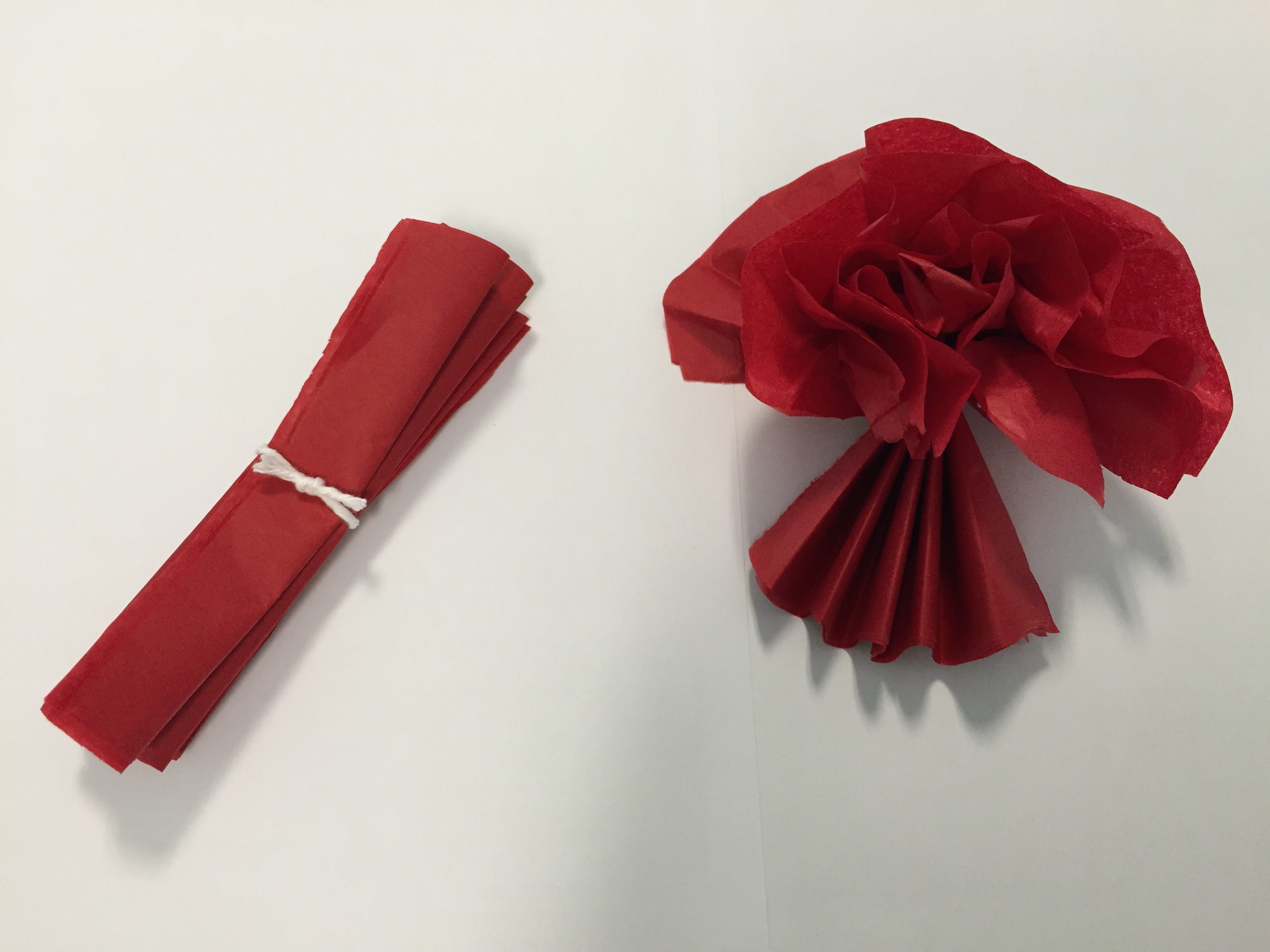 Varias capas de papel de seda, cuantas más mejor, se doblan como un acordeón, para fuera y para dentro.